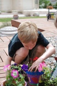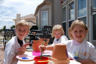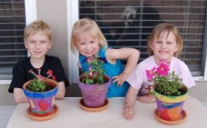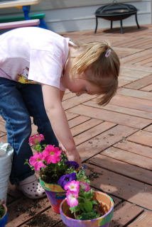 Today we decided to plant flowers. I know, I know, they will only last a couple days and the deer will eat every last one of our beautiful flowers but it is still fun to plant them and attempt to keep them alive. I have tried every recipe and idea to keep the deer away from my plants but I have to admit that I love seeing them (the deer) in our yard so much, it doesn’t bother me that they graze on my petunias. After church, we headed out to pick out flowers for our pots. The kids each picked out a couple special flowers for their own pots. Once we were home, they painted their pots with bright colors and filled them with flowers. Once all our flowers were potted and strategically placed (on top of the picnic table and hanging from the eaves) Sam, Alice and Paige played on the swing set for the rest of the afternoon. Another fun filled day down and back to school tomorrow. Only 4 more days for Sam and he will officially be done with Kindergarten. Alice’s last day of school is tomorrow and she has her preschool graduation. I really cannot believe that she will be going to Kindergarten. She just doesn’t seem big enough.