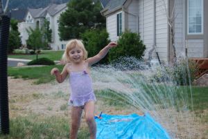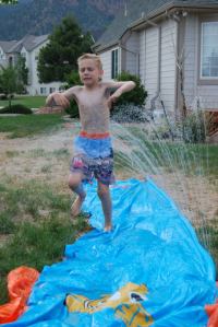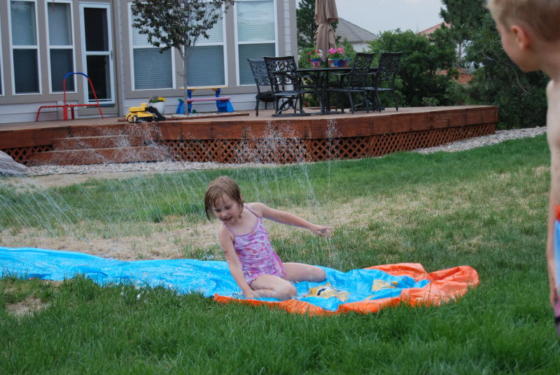 Anyway, here are my three very dirty but happy children playing on the Slip n’ Slide. It could also be called by other names at our house….Run next to it n’ accidentally Slip…..Slip n’ Slide n’ Water the dead Grass too