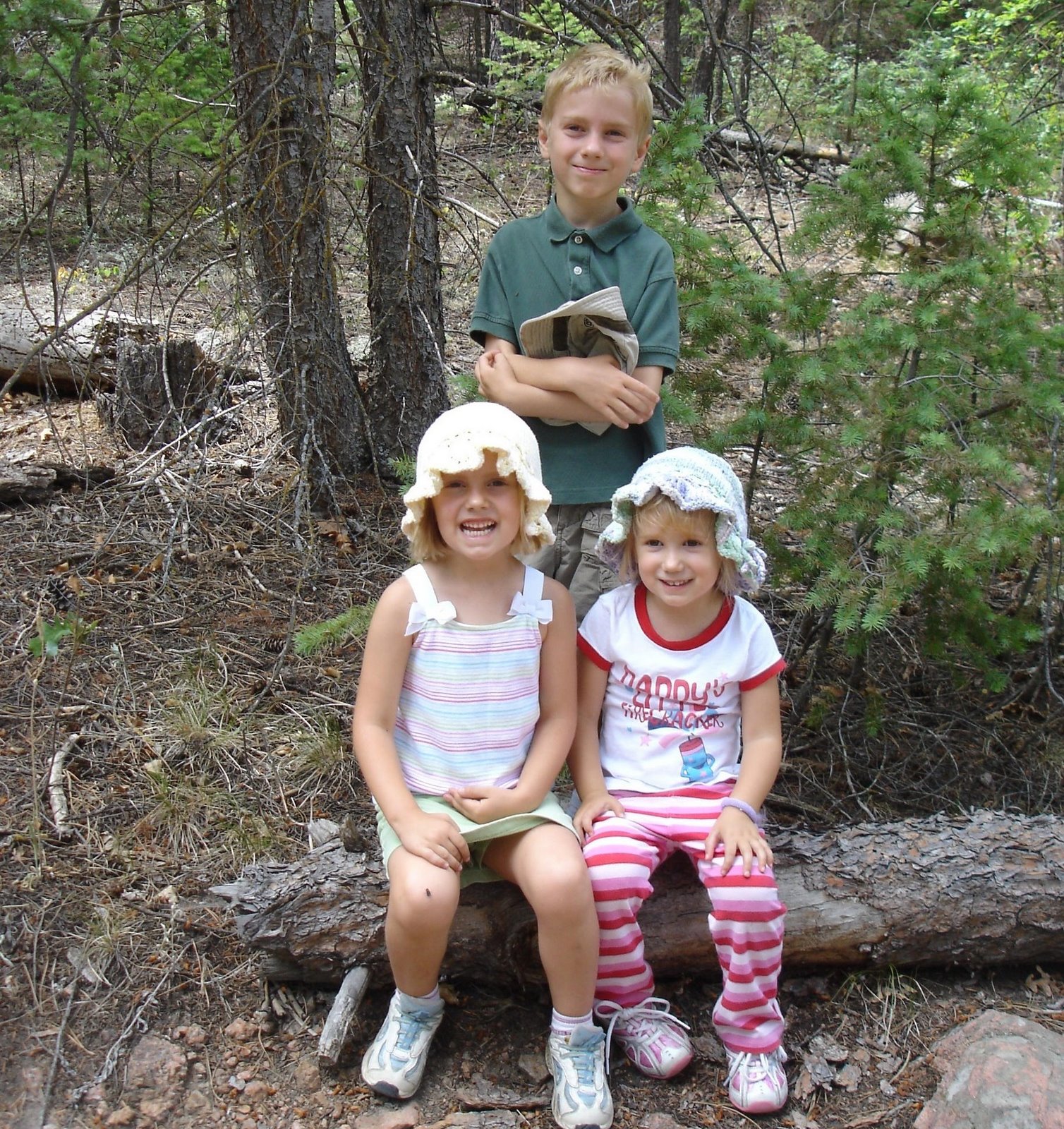 This morning was a bit cooler so we made our way up to Blogett Open Space to hike around. We knew that we wouldn’t make it to the peak, partly due the ominous black clouds peaking over the mountains and the three sets of little legs moving up the trail, so we just set out, unsure of how far or where we might end up. Usually the kids are pretty excited for hiking but today they all woke up a bit moody so our hike started out rough. The whine. Once we made our way further into the hike and under the shade of the pines, their moods seemed to brighten. Whew!