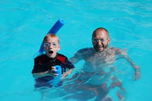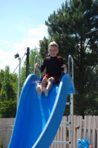 Friday the 4th, we spent most of the day at the pool. The weather was beautiful, a perfect Colorado day. We sat next to the sand box and playground mainly because there was no other place to squeeze in. The kids had fun in between swimming and eating to play and get super sandy! After the pool we cleaned ourselves up and went out for a yummy dinner. After dinner we headed back to our house for bocce ball fun. We were planning on watching the fireworks at the Air Force Academy but decided to wait and see what we could see from the yard. Our house is up on a ridge so we can see pretty far. Thankfully, after lots of crossed fingers and toes, we were able to see the downtown fireworks from our neighbors driveway. They were pretty spectacular and we definitely know where we will be next year for the holiday!! After the pool and fireworks, all the kids fell into bed. The adults enjoyed the rest of the evening with cocktails and more bocce ball.