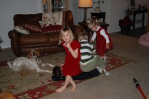 This weekend was pretty much dedicated to the Christmas Program at church. We had our practice on Saturday morning and then the program on Sunday. All the kids did awesome and looked adorable in their costumes. Alice was an angel and Sam was a shepherd. Paige was in the choir with the other kiddos her age. She had a bit of stage fright and ended up on a volunteer’s lap. Oh well, maybe next year. All together we had 38 children participate in the program. I think that might be the most children that we have ever had!! Wow! Next year, I am going to take a break and sit back and watch 🙂 My husband says “yeah, right!”.