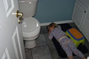 Here is Paige, asleep on the bathroom floor. She was too tired to get on the potty….