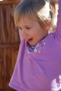 Yes, she is playing on the dilapidated swing set. Who needs conventional toys….a big pile of wood and plastic seemed to do the job!