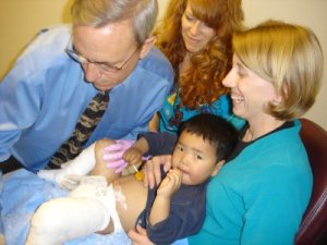 We have had a great week, packed full and I would love to give you all the play by play but Sam and Alice will be home in 17 minutes and Paige is requesting my help drawing a parrot and Mason is being entertained (at the moment) by a baby Einstein video but could want attention at any moment. We walked in the door half an hour ago from Greeley where Mason got his 5th set of casts. Things are coming along well and the doctor is definitely seeing progress. I took a couple pics of his feet for Scott to see. He doesn’t have the pleasure of driving to Greeley every Monday and was really interested in how Mason’s feet looked. I think they look great, cute enough to kiss 🙂 Now you all get to see them too!