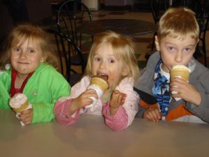Because it was snowing, our neighborhood egg hunt was postponed. Sam had a birthday party in the afternoon. Pretty quiet. Saturday evening we went downtown to one of our favorite restaurants, Il Vicino, and had pizza. It was such an enjoyable evening, the kids were so good. After dinner, we walked down to Acacia Park, played for a few minutes and then hit Josh and John’s for ice-cream.