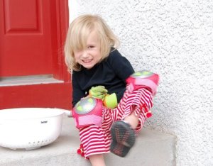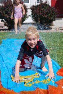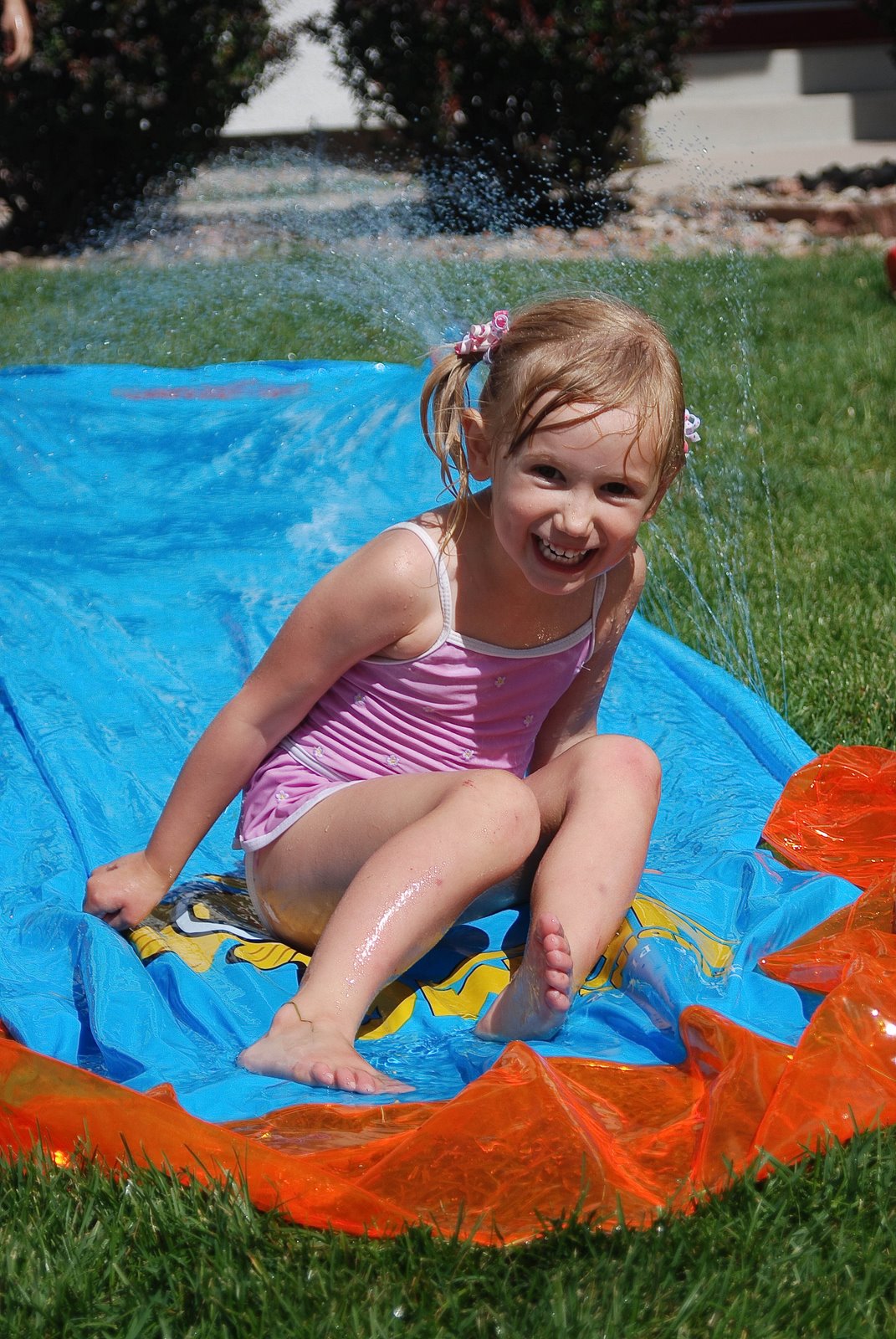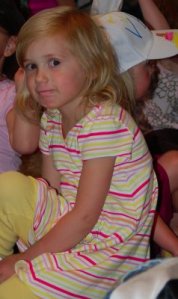 Okay, so today I rounded up the kids and we headed off to the library to read and check out some books we had on hold. I went in first figuring all my ducklings were trailing behind me but when I looked back, Paige was standing off to the side of the front door, facing the wall, eyes tightly shut and her arms crossed. When I asked her what was wrong, all she could squeak out was “Spiky Ball”. Sure enough, on the counter in the Children’s Library were 5 colorful spiky balls lined up, prizes for those kids who could complete the summer reading program. I tried to get her to walk past, ignore them, anything so that we could spend more than a nanosecond in the library. Everything I suggested just made her scream louder…and we are talking blood curdling here. I was looking for an afternoon event to fill up the time and this was not going to be it. Sam swiftly retrieved our books on hold and we were out of the library in 5 minutes.