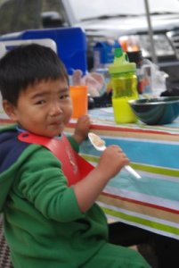 Mason’s first breakfast outdoors. He really seems to thrive when we are doing something outside, be it hikng, biking, camping, etc.