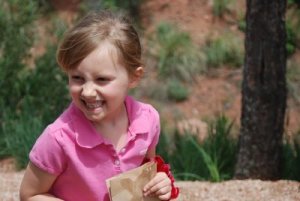 Yesterday, the kids were really in my hair and I was trying to get the house picked up for a visit from our social worker so I decided to send them out on a scavenger hunt. I gave each of them a brown lunch sack and wrote item to be found on the outside. They had to work together and couldn’t come back with their loot until everyone had completed the list. They had a ball and we ended up doing it again inside. We just turned the bag around and wrote a new list on the other side.