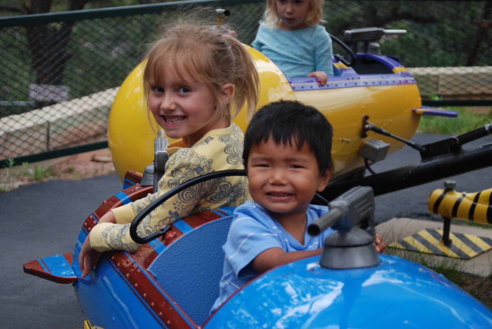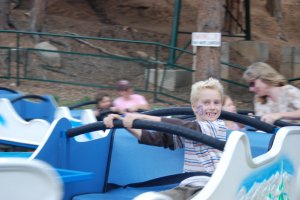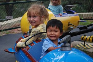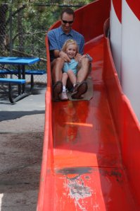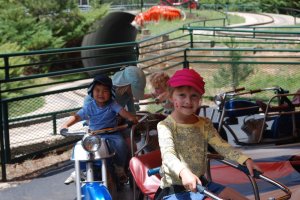 Wow! We have been busy this week with Scott’s parents in town. We spent last weekend here in the Springs. Saturday morning, Scott and I spent most of the morning on the peak running up and down. More about that at a later date. Sunday, we took the kids to Santa’s Workshop, a kiddie amusement park just 20 minutes from the house. Unfortunately, we were rained out after lunch, but not before the kids took the adults on plenty of twisty rides, ugh! We spent the rest of the week hanging around town. We went to the Pioneer’s Museum, America the Beautiful Park, shops in Castle Rock, Manitou Springs…..The favorite of the week was the Iron Springs Chateau Melodrama. We really wanted to do something fun to celebrate Scott’s mom’s birthday. Scott decided that the melodrama would be fun. Fun was had by all. The best part was watching the kids reactions to the silliness of the show. With in-house babysitters, I got to have some one on one time with Sam and Alice. We got some back to school shopping done and made a trip to the library, sans Paige. If you don’t know that story, read here. Thanks Mom and Dad for all your help!