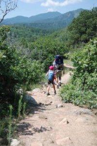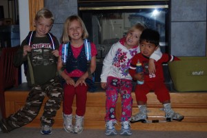 We enjoyed another good but busy weekend. The kids have one more full week off before school starts. Friday night we went the Young’s house for Vic’s birthday bash. Saturday morning we got up bright and early for the Sue Dinapoli Ovarian Cancer 3 K walk/5K run. Our friend Laura organized the race in honor of her mother who passed away due to ovarian cancer. We were planning on leisurely walking as a family but the kids had different plans and we all ended up running. Scott and I were totally impressed with all three kiddos running a 3K. That’s a long way for little legs 🙂 Saturday afternoon, Scott, Mason and I headed to Denver for yet another parenting class. If you remember we didn’t get a chance to finish all our classes before traveling to China so now we are trying to get those classes out of the way. We have one more to go, Yah! While we were in Denver, Sam, Alice and Paige were hanging at the pool with the Young’s. Sunday was just as busy with church in the morning, a nice hike through Cheyenne Mt. State Park in the afternoon and then ending the day with dinner and swimming at the pool. I would write more but who are we kidding, you (and by you, I mean grandma) just want the pictures. I had fun snapping pics of the kids on the hike today. They all wore their Camelbacks and had a lot of fun jumping off rocks and looking for lizards.