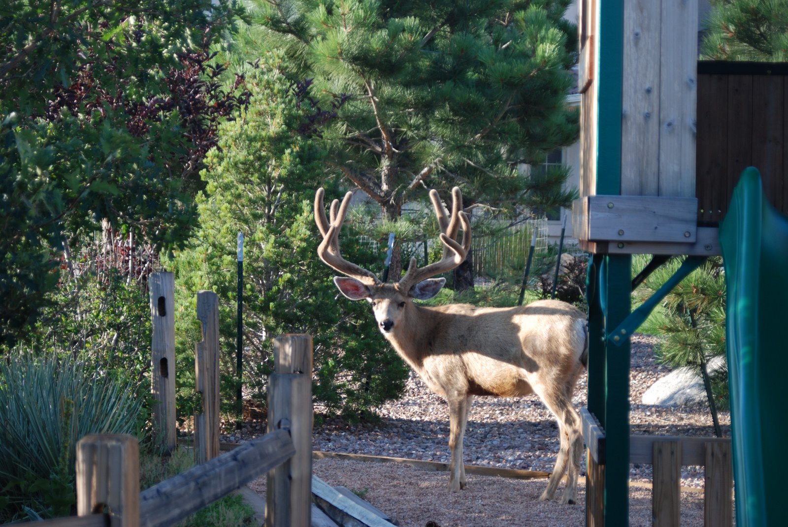 Just hanging out by the playground. The deer are really glad that our fence is still down so that they can easily go through our yard. The beauty of it is, we cannot even see the downed fence from the house. Sorry to the neighbors. Just waiting for the HOA letter, should be here any day now.