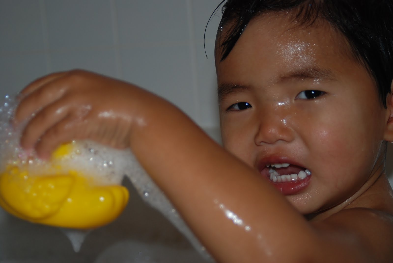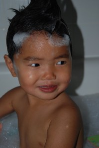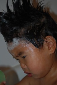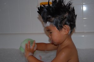 He loves his baths. He would stay in there all day.