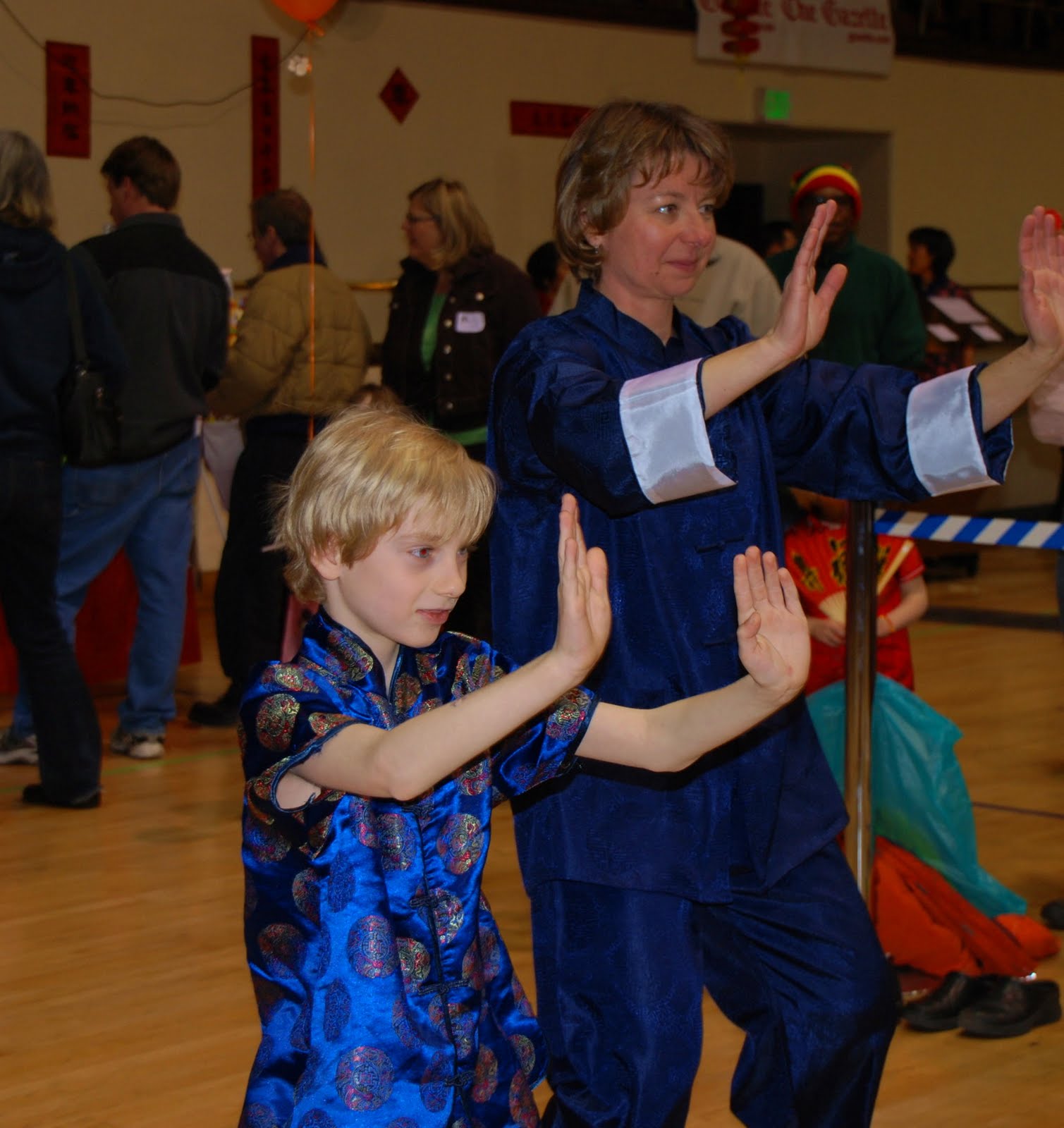 Anyhoo, back to my original post. You know the one about Chinese New Year. Happy New Year! Yesterday we attended the New Year’s Celebration downtown. Fun was had by all. Especially Sam. He learned tai chi, enjoyed the lion dance and all the martial arts demonstrations. The kiddos donned their traditional Chinese clothes and looked pretty adorable, if I do say so myself.