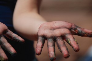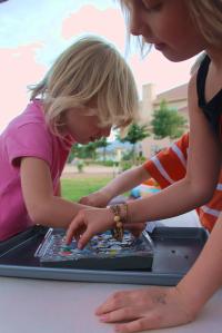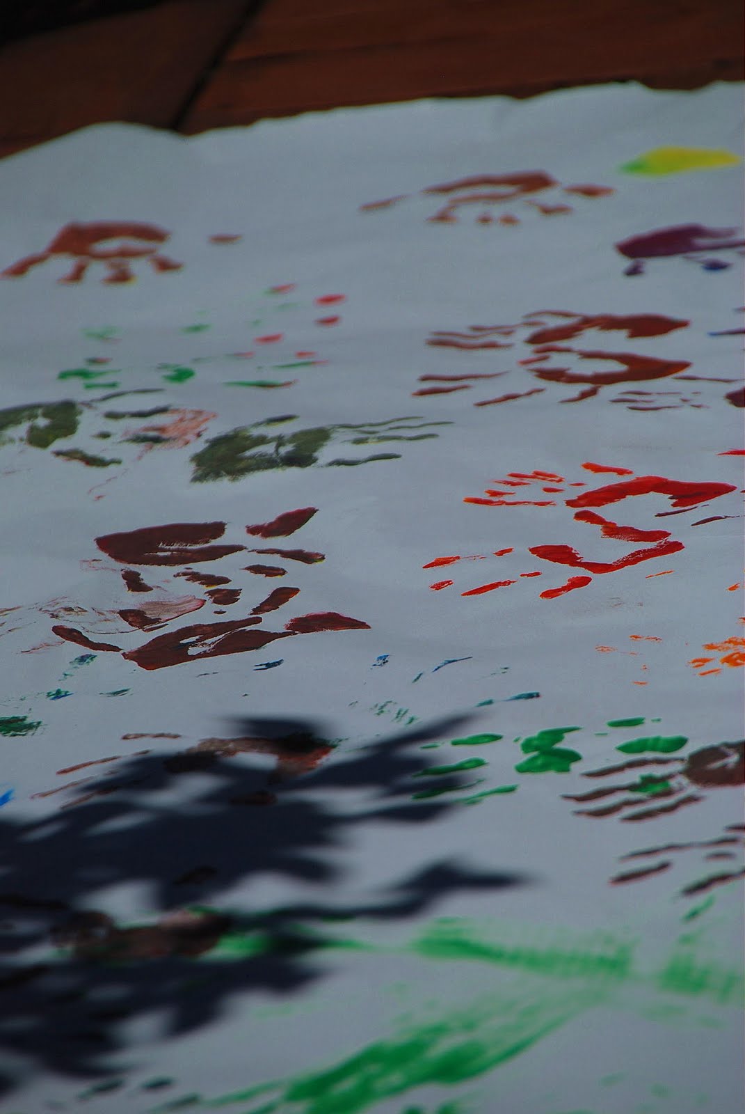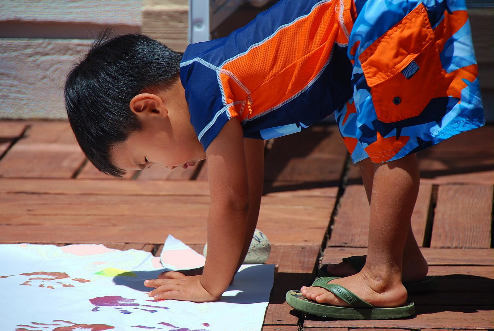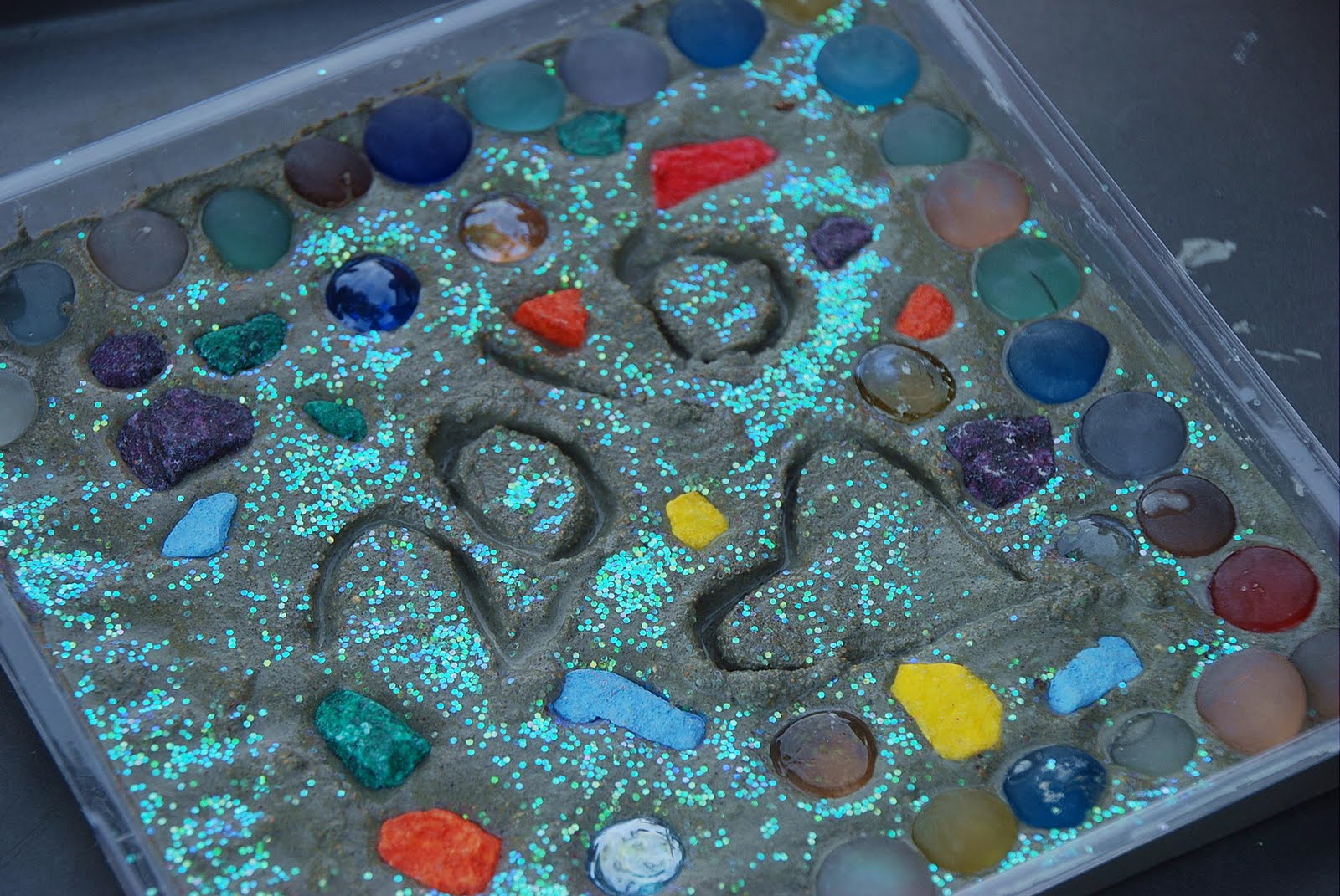 Monday, otherwise known as Art Monday around here, was busy with swimming, gymnastics and errands. For our art project, we made a garden stone for the yard. We are still trying to finish up our under the sea mural. More pics coming soon.