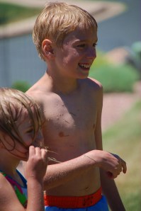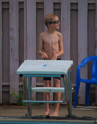 Today, Sam and Alice had another swim meet. They each swam three races and Alice also did her first relay. I have to brag again because today Alice went off the block for the first time in a meet. Normally she jumps in off the side but today they blew the whistle to get ready and up she went like it was no biggie. I couldn’t believe it. Well, she is seven now 🙂