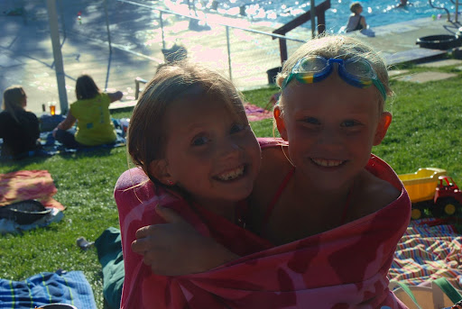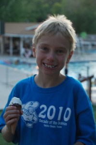 Today, Sam and Alice had another swim meet. They each swam three races and Alice also did her first relay. I have to brag again because today Alice went off the block for the first time in a meet. Normally she jumps in off the side but today they blew the whistle to get ready and up she went like it was no biggie. I couldn’t believe it. Well, she is seven now πŸ™‚