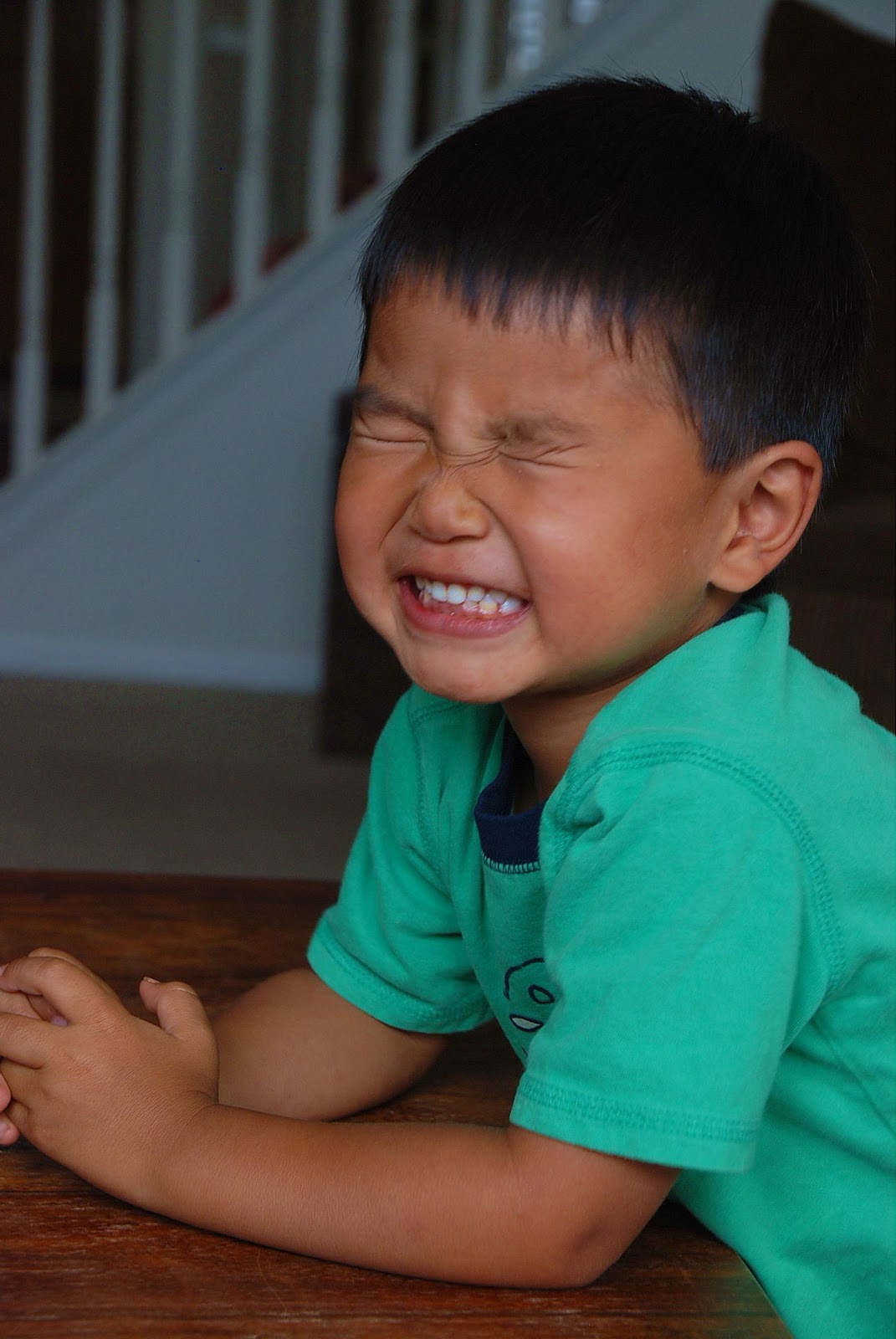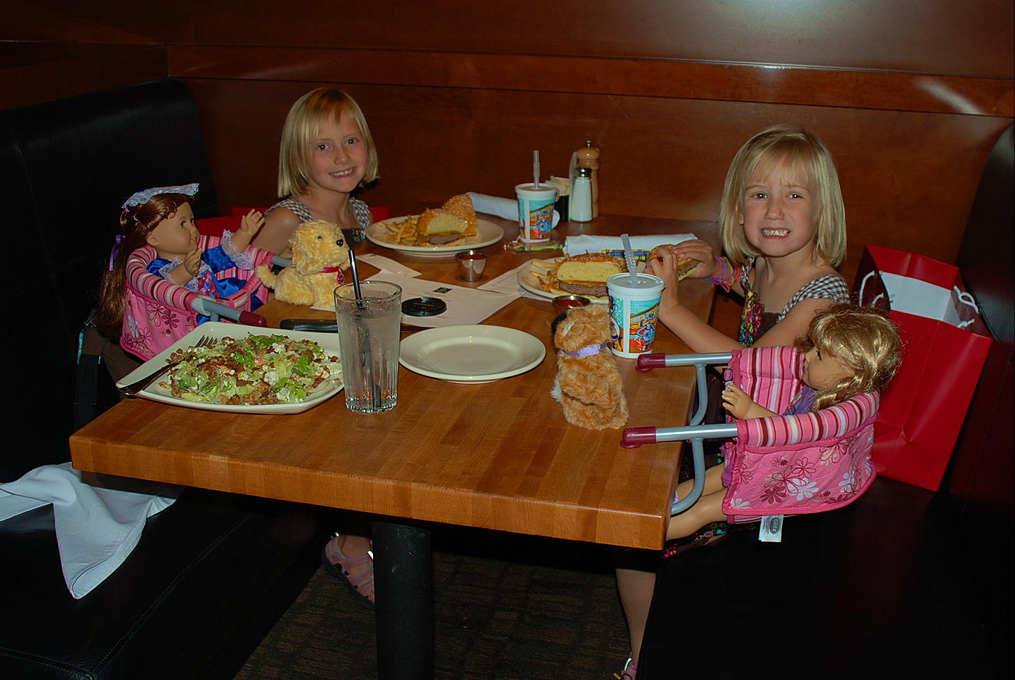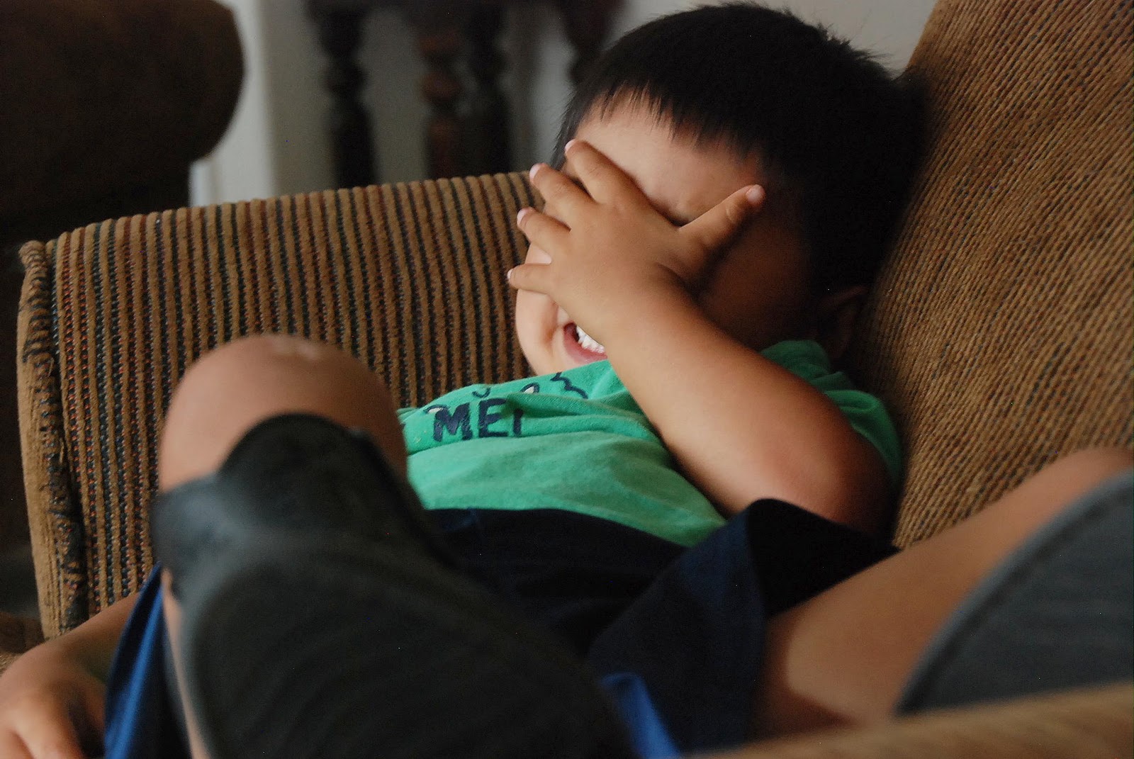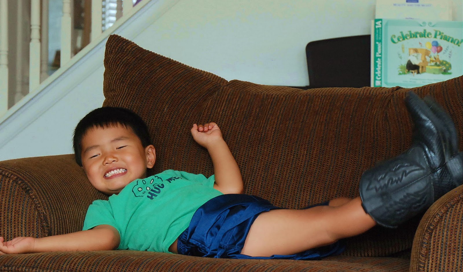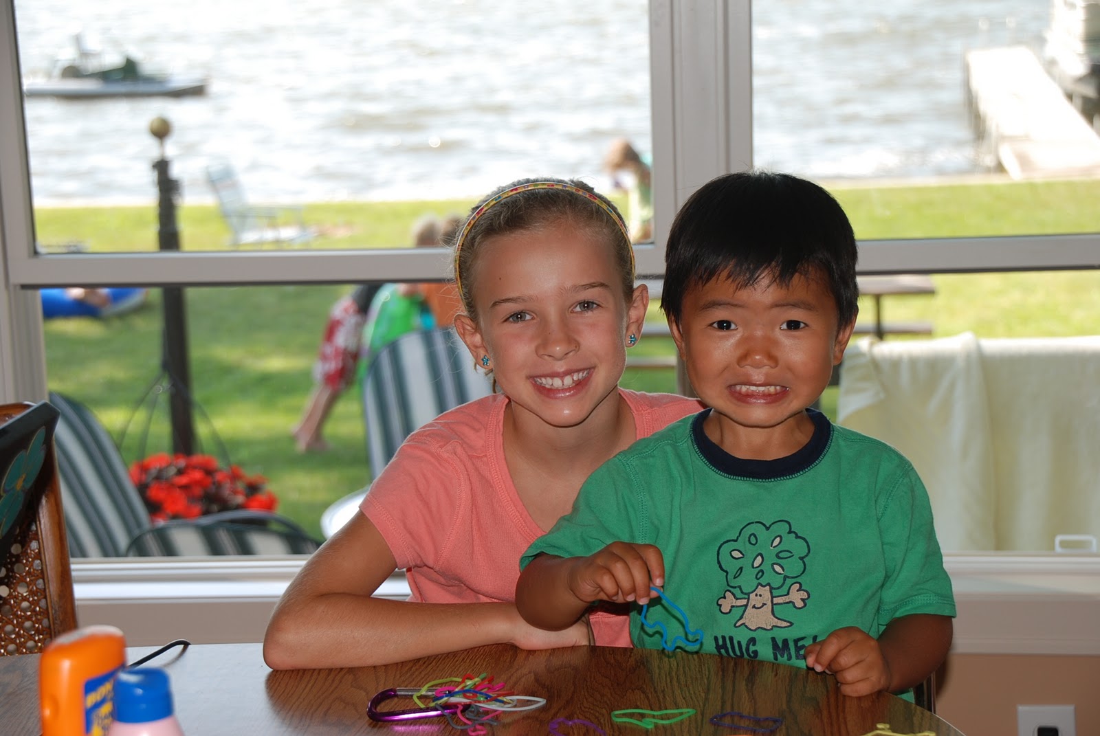 Check out their faces. They were pretending to be scared of the dinosaur. Too funny.