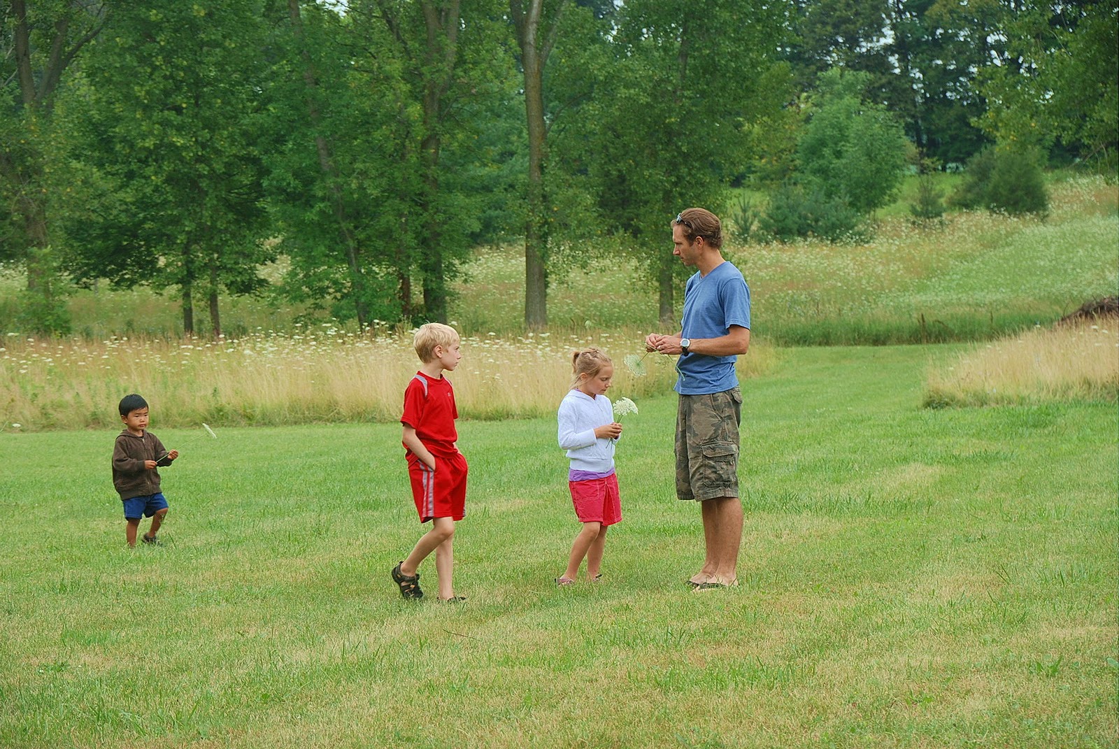 Checking out the backyard at my parent’s house. The kids were amazed at the size of their yard. And a creek to boot. Super cool status 🙂