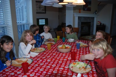 By the way, KIC stands for Kids In Christ and it is the 3rd, 4th and 5th graders from our church. They meet once a month for a couple hours of fun time. Last night, they met at our house for dinner and Wii games. They had a great time and wore themselves out! Our KIC group has also adopted the Humane Society and donates items each month for the animals.