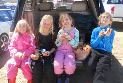This weekend we headed up into the mountains for some time away and some skiing. A couple months ago, I bought a Groupon for 2 nights at the Monarch Mountain Lodge. We had a free weekend and took the opportunity to get in one last ski day. Our friends, The Youngs, and a couple other families also spent the weekend at Monarch. We headed up Friday night and then skied all day Saturday. Today we headed down into Salida, ate breakfast, hiked around a bit and then met our friends for lunch before heading for home. It was a very relaxing weekend. The kids had fun being with friends, watching movies, swimming, skiing and just hanging out. The weather on Saturday was beautiful with temps in the 50’s and 60’s. We were all way too warm in our ski gear. The kids thought it was hilarious when we saw guys skiing without shirts and girls in bikini tops. It was tempting to strip down to near nothing but I spared everyone and kept on my fleece 🙂 Today the weather was cooler and a bit rainy. We even hit some snow on the drive home. Good thing because we really need all the moisture we can get! It has been an extremely dry winter here in Colorado. Soooo, here are the pics from the weekend. Another fun and exhausting ski day under our belts.