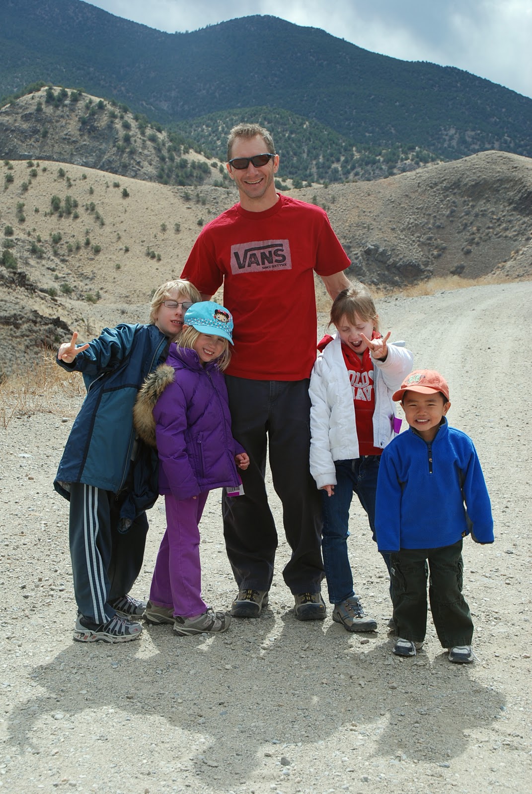 Scott and the kids on our drive/hike up Spiral Drive in Salida.
