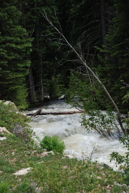 We have thoroughly enjoyed our week in the mountains. It seems that like is just a little calmer up here at 10,000 feet. There is still lots of snow on the mountains and streams are overflowing their banks. The wildflowers are all in bloom. Yesterday afternoon we hiked. The kids had fun playing in water run-off and finding rocks to climb. Another beautiful day.
