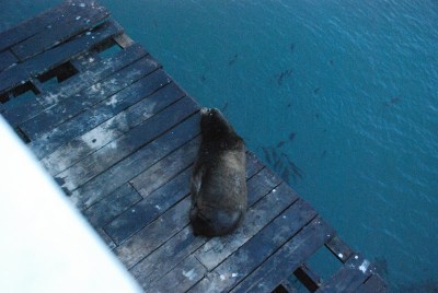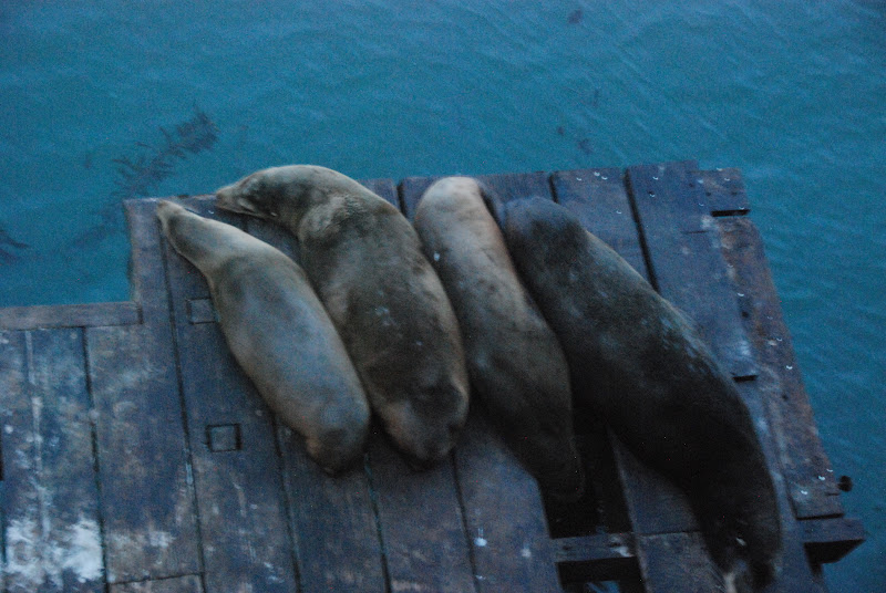 While strolling down the pier we heard some sea lions talking. Do sea lions talk? I need to have Sam look that up. We look over the railing and saw about 5 or 6 of them laying on a platform under the pier. It was really cool. Sorry for the low picture quality as it was right at dusk.