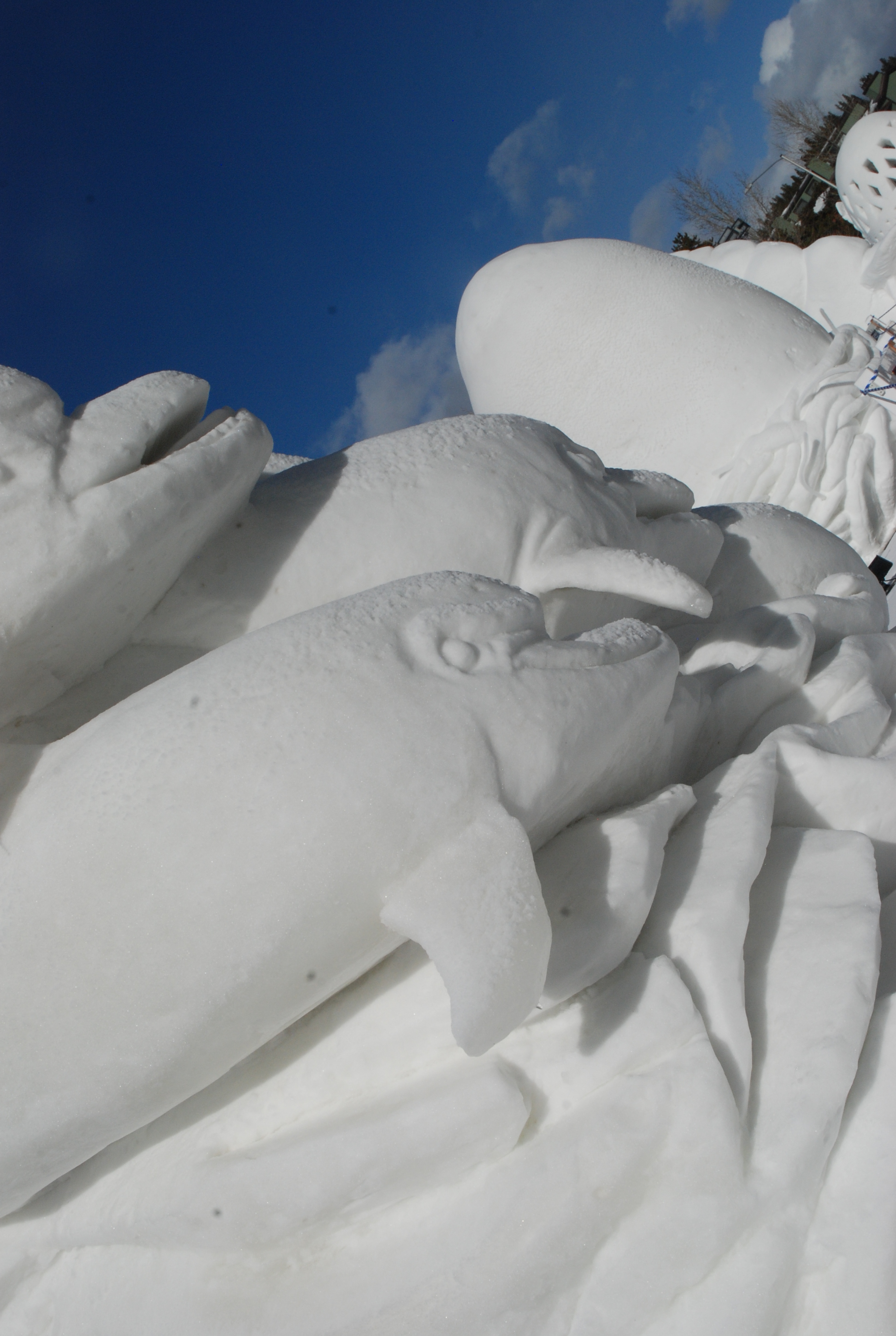 Sunday, after church we went downtown Breckenridge to check out the snow sculptures. Last year, we waited too long and after the summer like winter we were having, those babies were melting fast. It is pretty cool to see what can be done with an enormous block of snow and some gardening tools. Teams come from all over the world to compete.