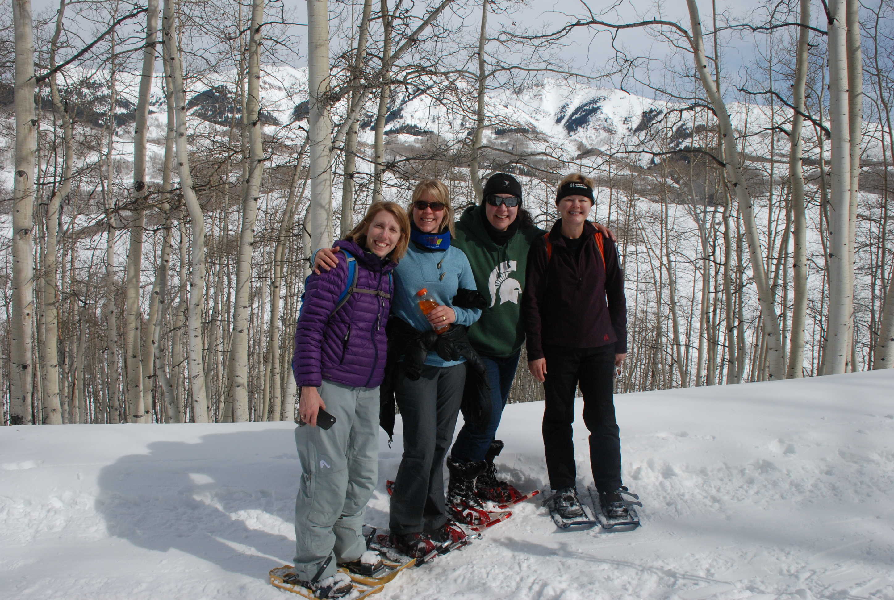 Every once in a while, I get to go away, all by my big girl self (all by myself means without a human being under the age of 12 in tow). This past weekend I joined three friends from Colorado Springs on a girls weekend to Crested Butte. Crested Butte is this gorgeous sleepy little mountain town about 3 1/2 hours away. We had a blast and it was a perfect weekend for relaxing. We ate, we drank (way too much), we snowshoed, we sat in the hot tub and we laughed, a lot. Scott was a champ and stayed home with our four babies. He had lots of plans for the weekend but Samuel woke up sick on Saturday morning and the rest of the weekend included thermometers, Ibuprofen and bed rest.