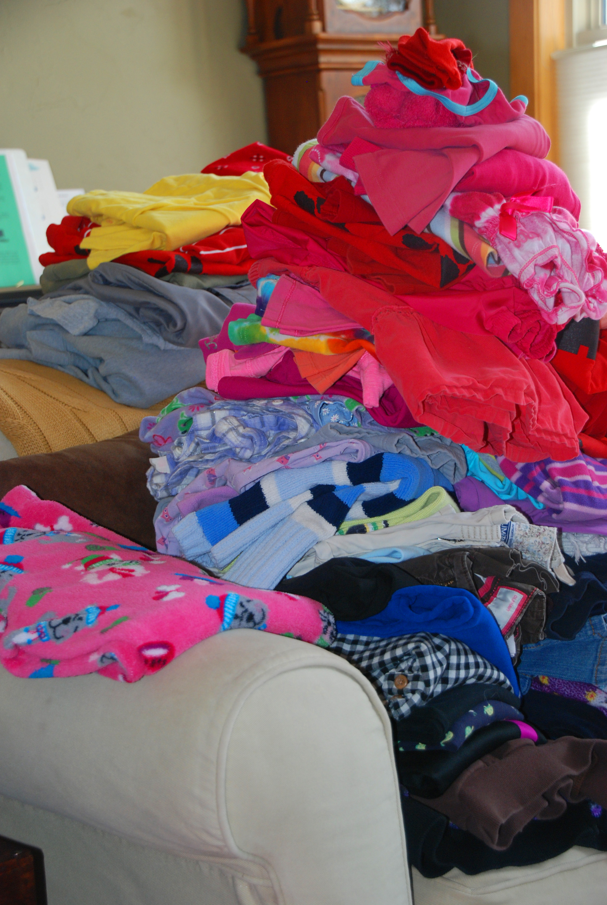 Laundry around here is big business, literally. With four kids, I feel like my dirty pile is never ending. In the summer and on breaks, the kids are really great about helping out, but when they are in school, mom is the laundry attendant on duty. So, all you moms (and dads) out there~ How do you handle laundry at your house? Do you do it all in one day or a couple loads each day? I know that I am not alone buried under this pile o’ laundry.