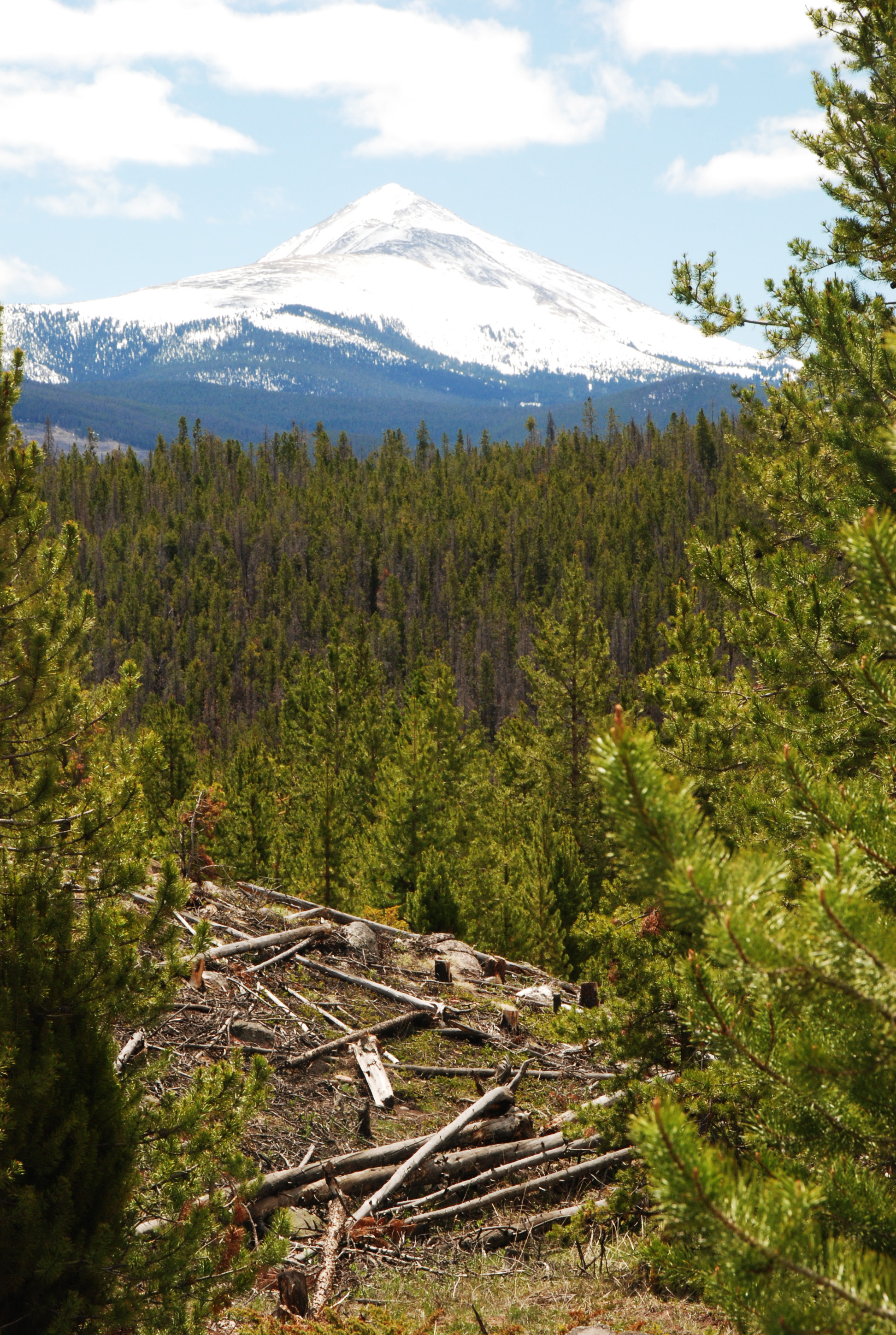 Beginning our hike through a decimated pine beetle kill forest but a beautiful view of Buffalo Mountain. Daddy showed us the route he took skiing. Crazy daddy.