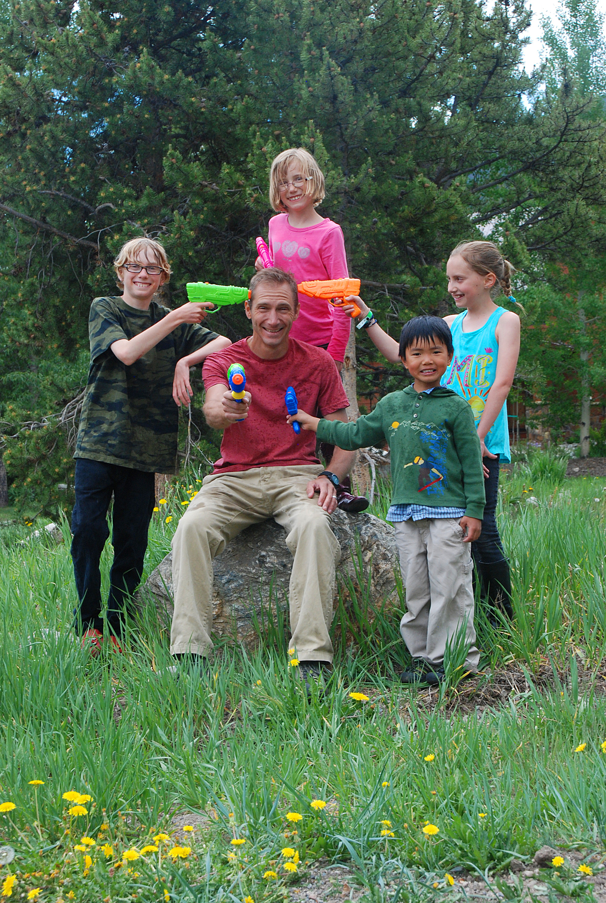 Always take lots of water. Up here in the Colorado mountains, we lack oxygen and moisture. You can get dehydrated very quickly. All of our kids have hydration packs (backpack with water reservoir). The packs are also super awesome for hauling all their gear and then you don’t have to carry it. Super rad.