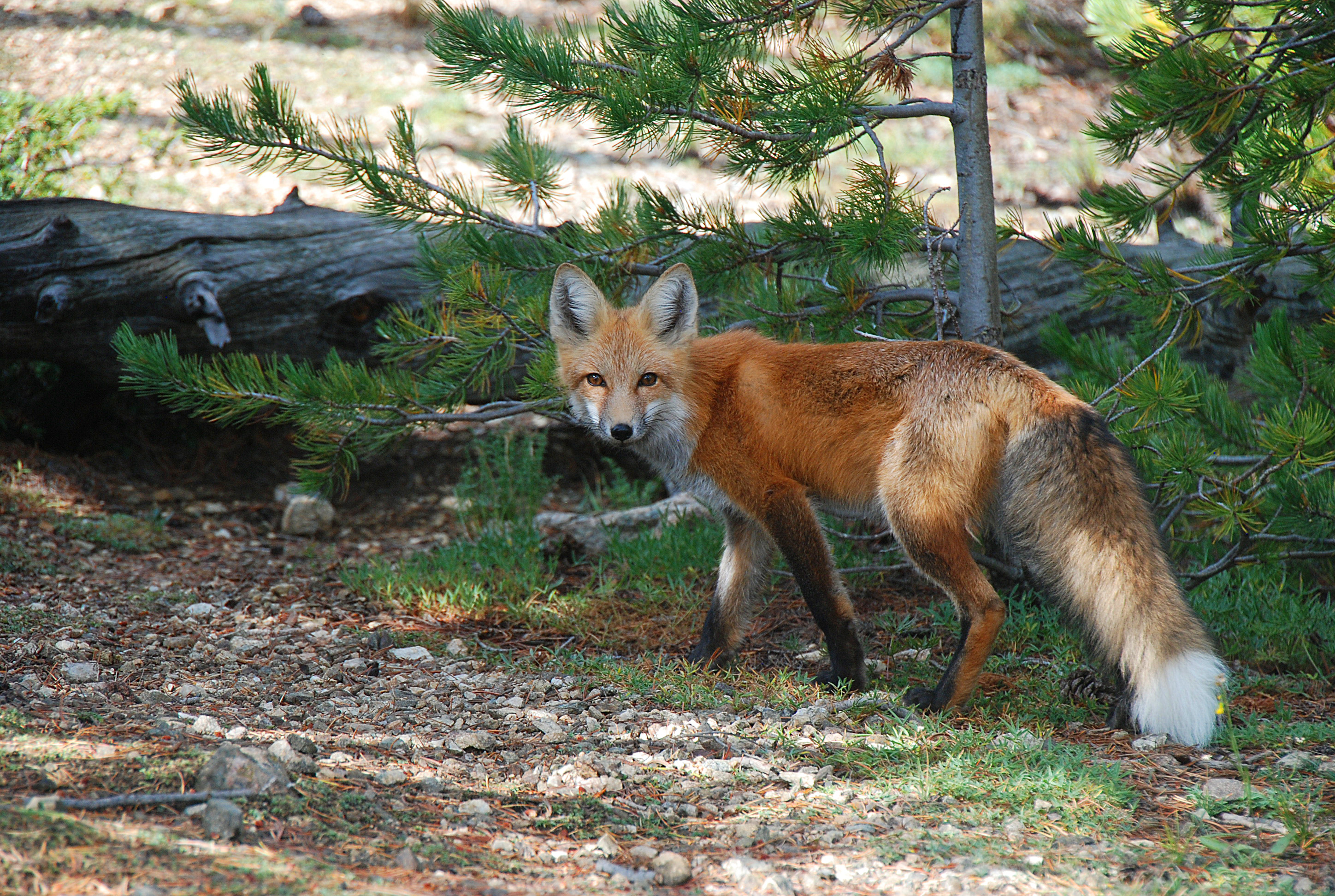 Once we got to the top, I could have stayed all day. I should have brought my book and lunch. While I was snapping pictures, I saw a light brown/orangish blur out of the corner of my eye and my heart stopped for a second. Of course, my first thought was mountain lion but luckily it was only a sweet little fox. A fox that had obviously been fed before because he had no problem coming right up to us. Scott kept scaring him away and I got some great shots of him. It kinda creeped me out at how close he kept getting. We had heard that the moose was hanging around near this hike but we didn’t see him. He was probably hanging out down by Rainbow Lake.