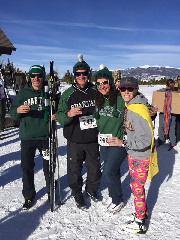 In the afternoon, the Young’s dropped their kids at our house and the adults headed to the Frisco Nordic Center for the First Annual Frisco Brewski. It could not have been a more perfect day! We skied around the nordic center, sampling beer and laughing til we fell down (mostly me). Scott, of course, crushed us all on skis! It was a fun day. Everybody at the brewski dressed in costumes, ranging from Big Bird to Stormtroopers. Here are a few of the pics taken.