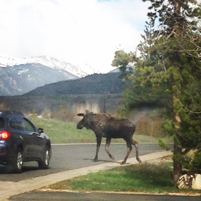 We have had a few wildlife encounters in the last couple weeks. Our neighborhood moose are on the move! Sorry about the poor picture quality…