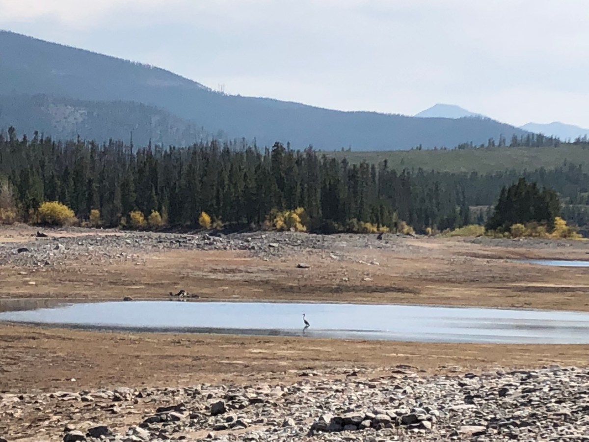 A huge heron was sitting in this pond. In a normal year, this is all covered in water. A few pictures up you can see the high water warning sign for boats. It’s dry.