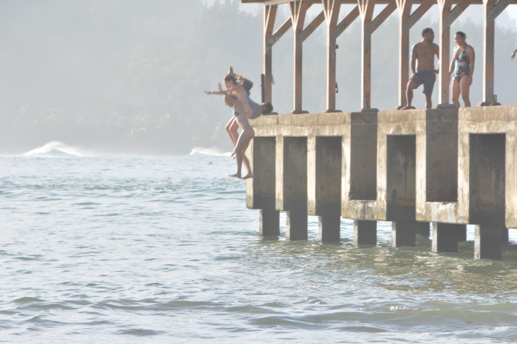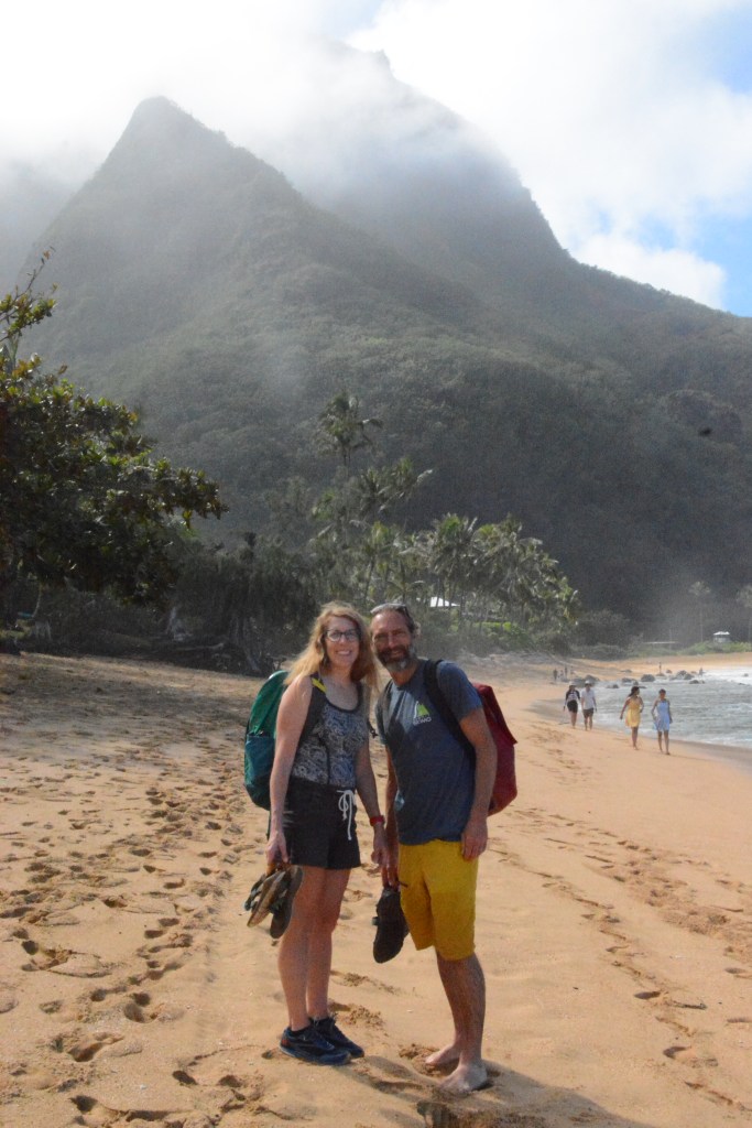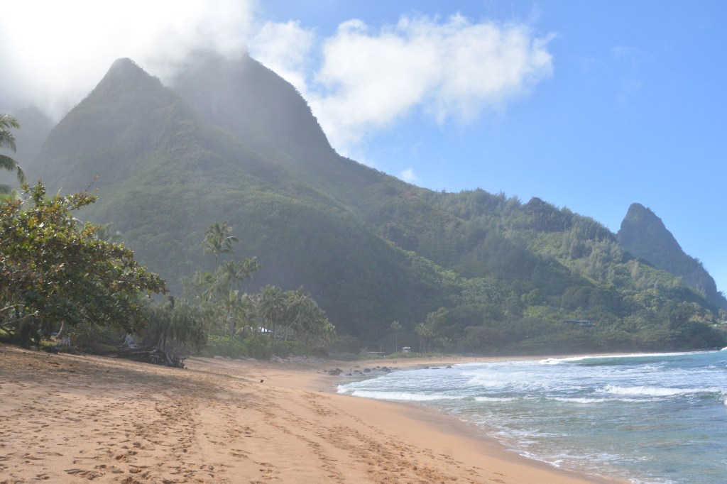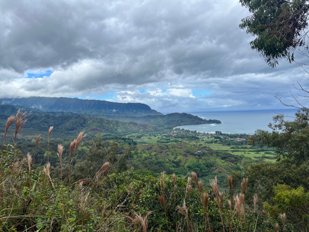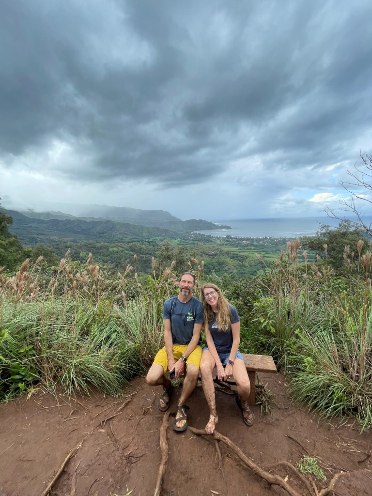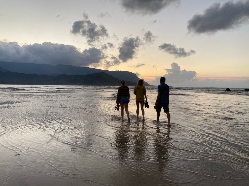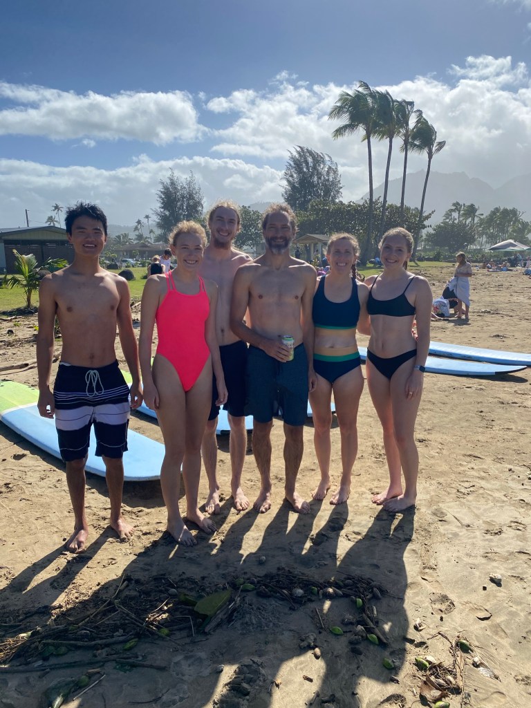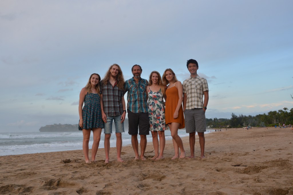 Friday- The girls and I walked into town and did some shopping. We had açaí bowls and had a lazy morning checking out the shops while Scott dropped Sam off for a long run. Afterwards, we took a drive up the coast to Tunnels Beach and walked around. This is a popular surfing and snorkeling beach west of Hanalei Bay. Unfortunately, the surf was too high and it wasn’t a good day to get in the water. We headed back to pick up Sam and then in the afternoon, Scott and the kids rented a surf board and took turns trying to catch waves. I sat on the beach and read my book! At the end of the day, we went out to the beach near the rental house and took family pictures.