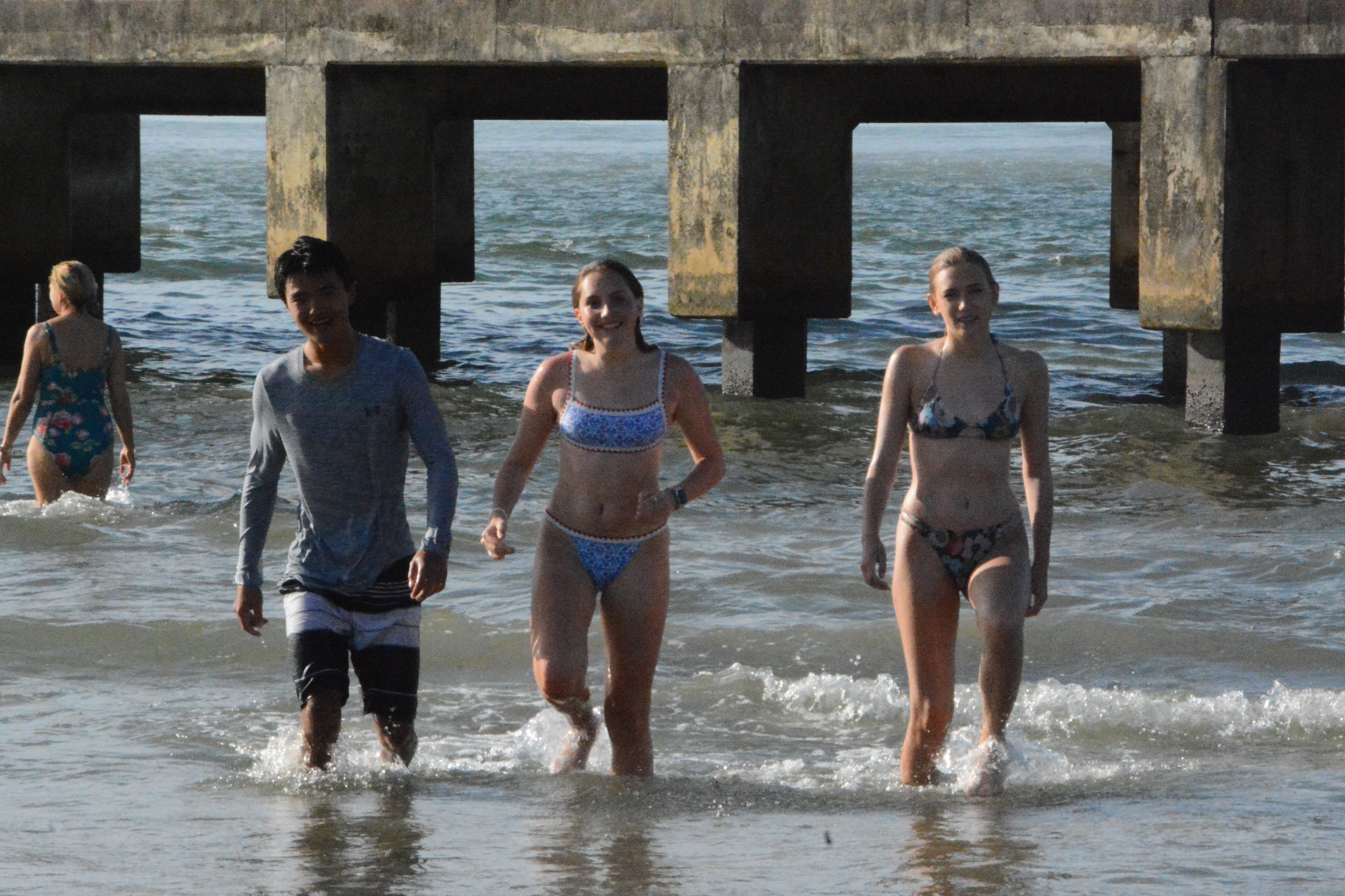 After surfing all morning, we stopped at Tropical Taco, for some fish tacos. In the afternoon, we all spent time at the beach near our house playing in the water with the boogie boards.
