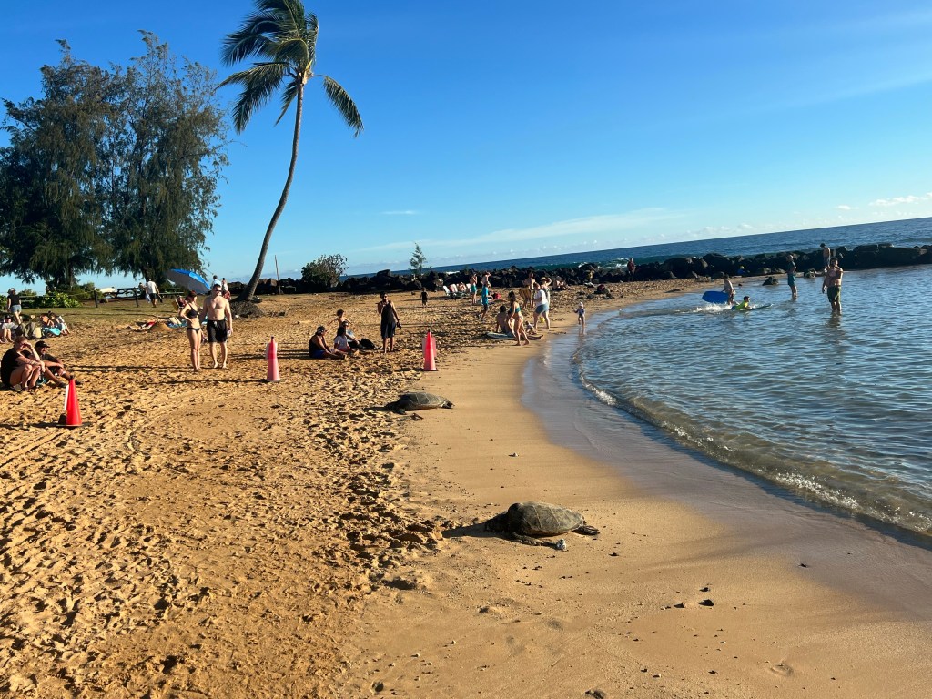 Sunday- Yah! Bonus Day! We spent the day snorkeling at Poipu Beach for the day. It was an exciting day. There were two monk seals and two sea turtles on the beach all day. Sam had a fun scare when a lizard fell in his hair. It was a perfect last day at the beach in Kauai.